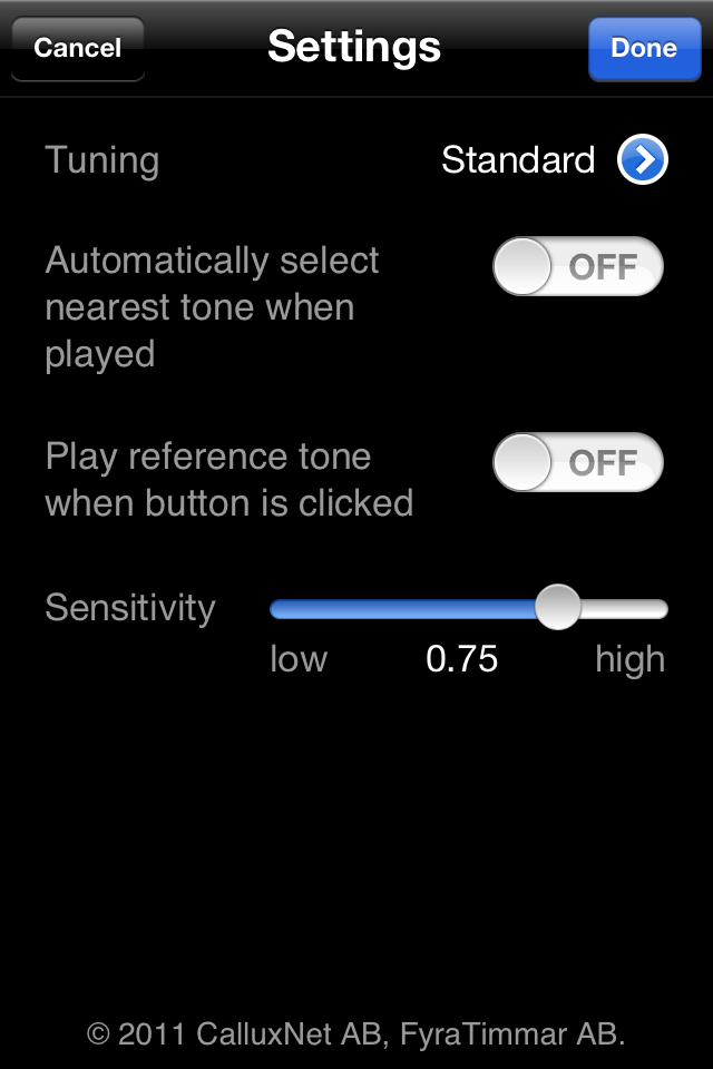 You can also adjust the sensitivity of the sound analysis. Lower the sensitivity setting to adjust for background noise, or increase it when you are playing silently.