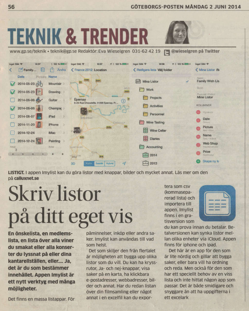 - Göteborgs-Posten app review "Skriv listor på ditt eget vis" (Swedish)