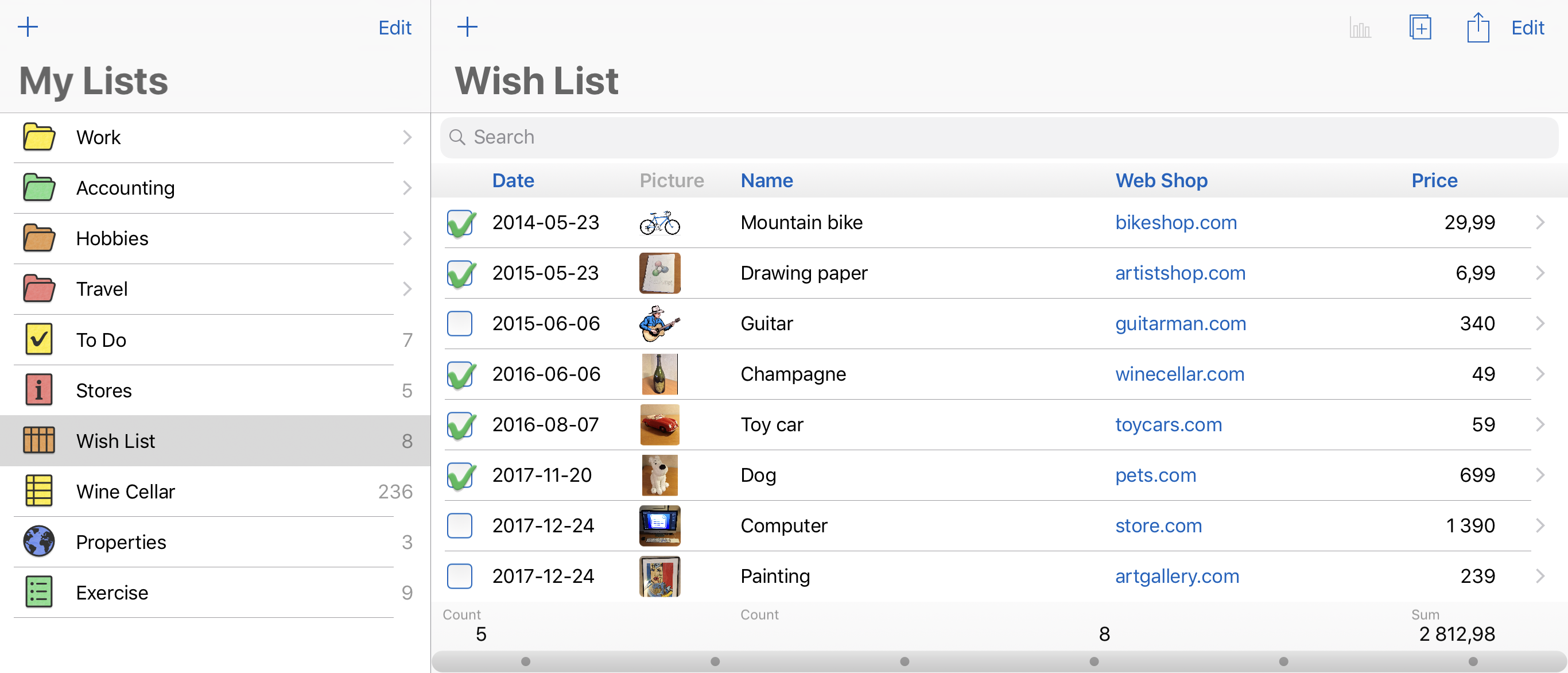 iMyList is an advanced list manager app that helps you to create lists for anything you need. The app contains great tools for sharing, sorting, searching, editing, and viewing your information.
