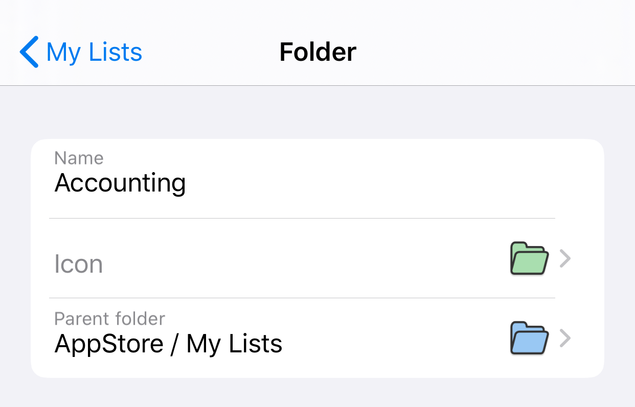iMyList – Create Folder