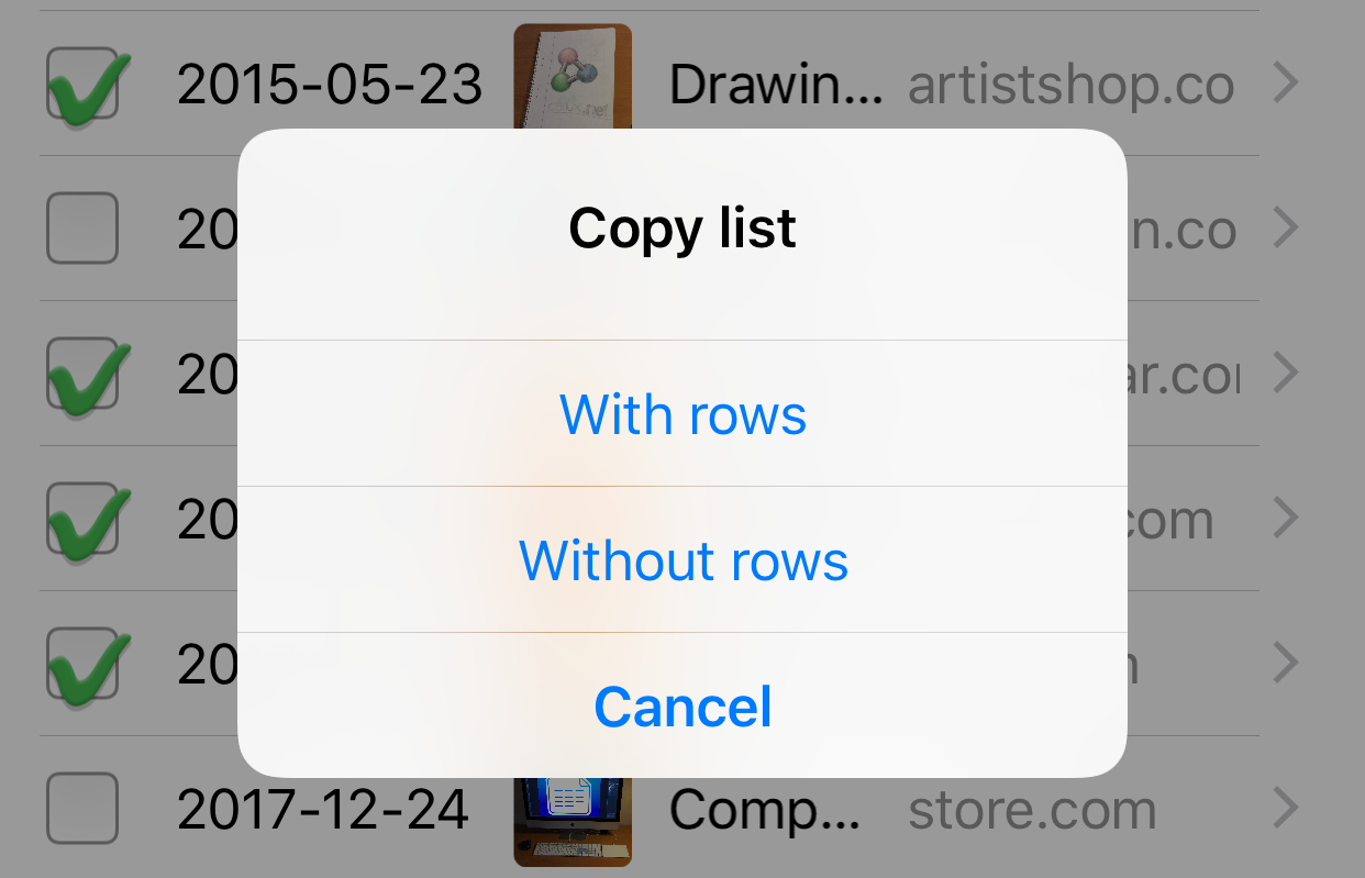 in the toolbar. - A message is shown asking if you want to copy the list with or without its rows.