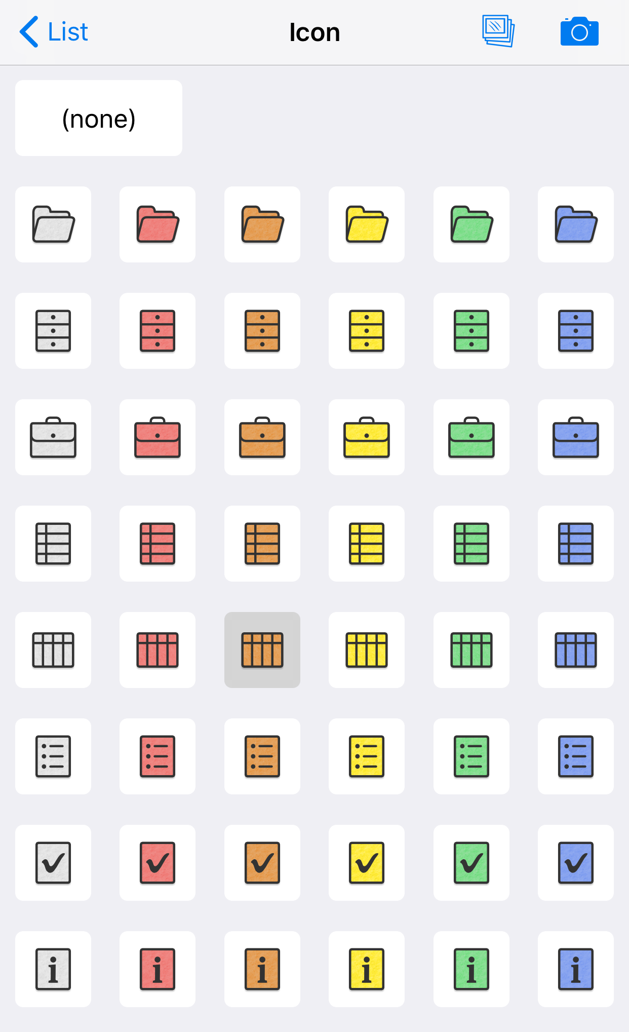 - Tap the Icon field in the Edit List/Folder view to select an icon.