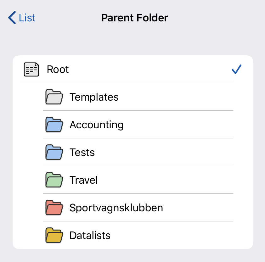 Tap a folder in the list to select that folder as the new parent.