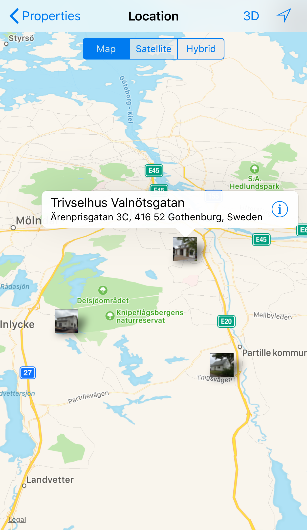 to show your current location on the map. Tap the Map, Satellite, and Hybrid buttons to change the view type of the map. Tap the 3D button to change to 3D view. - Tap on an annotation to edit the row.