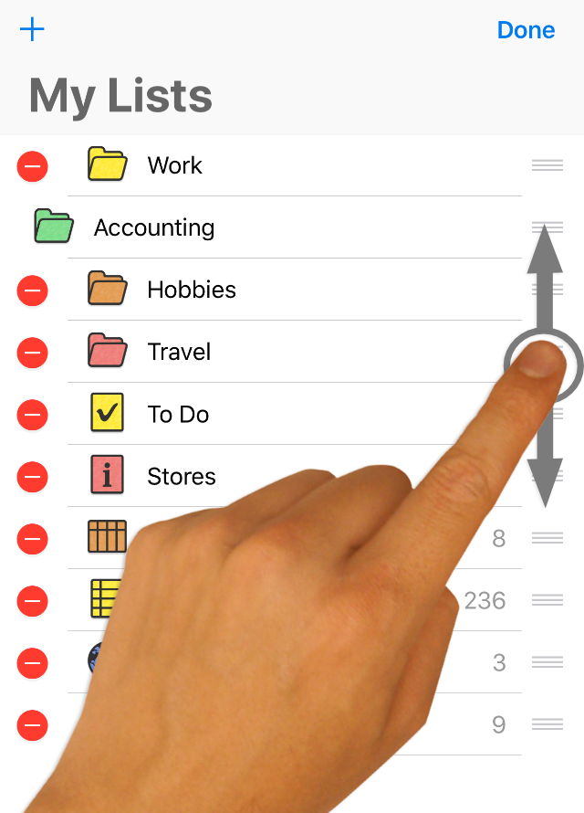 Move the list by dragging it upwards or downwards on its right-hand side.